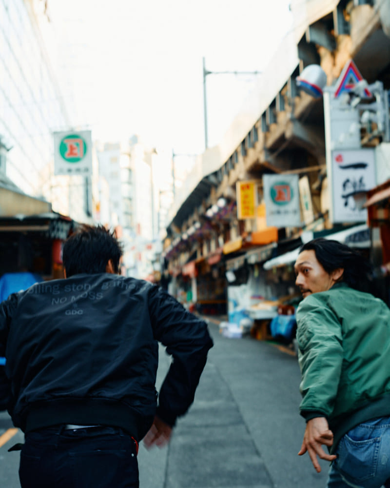 ビジュアル撮影は熊谷自身が手がけ、映像ディレクターには上山亮二を迎えたキャンペーンでは、追われながら逃げる俳優・水上剣聖と田中一平の二人の姿を通して、緊張感とリアリティが交錯するストーリーを描いた。AVIREXの重厚な世界観にGDCのストリートの息づかいが溶け合う、印象的なビジュアルとなっている。