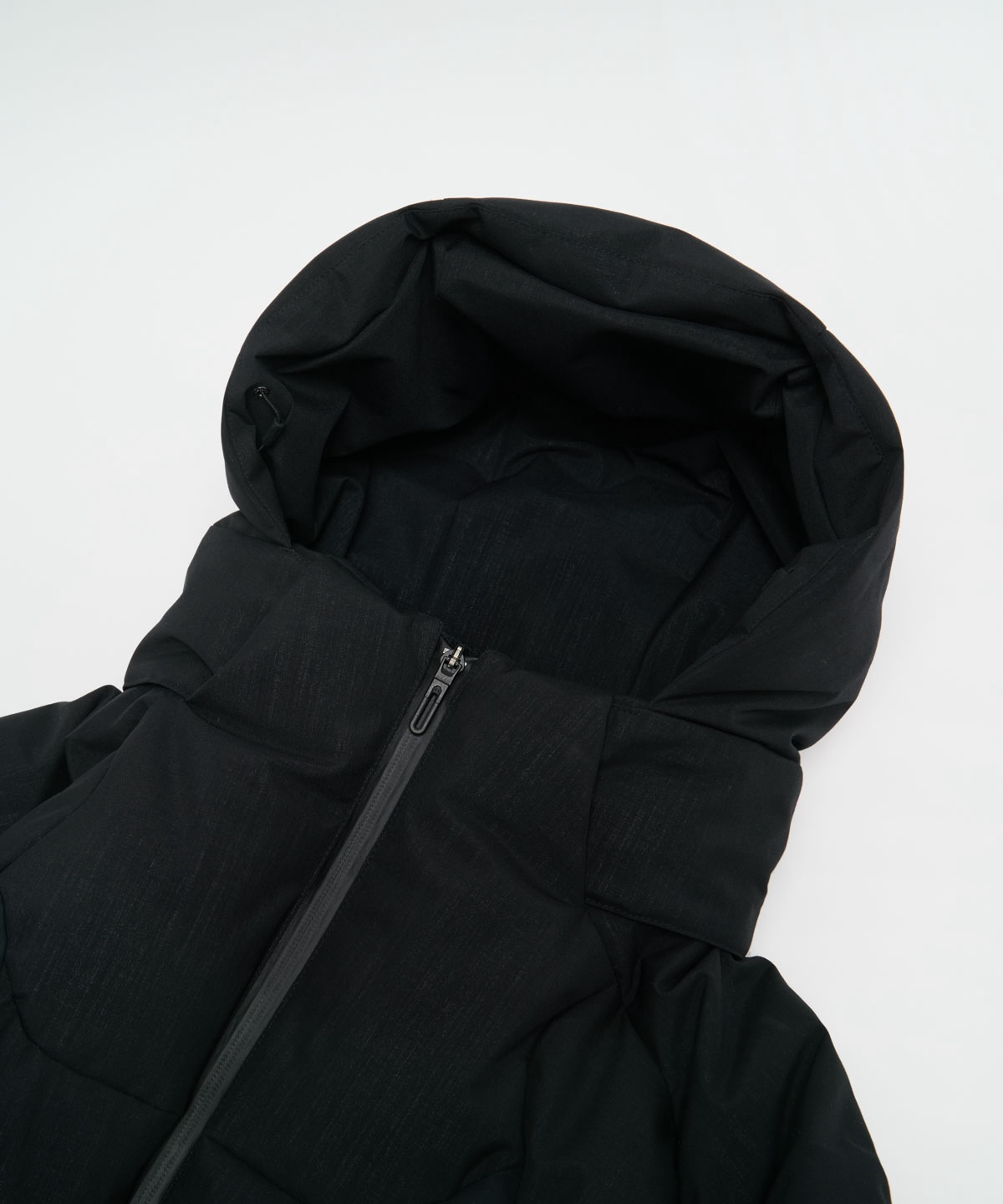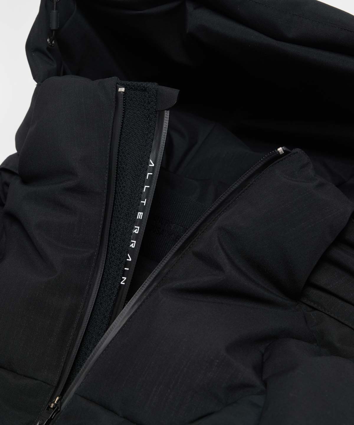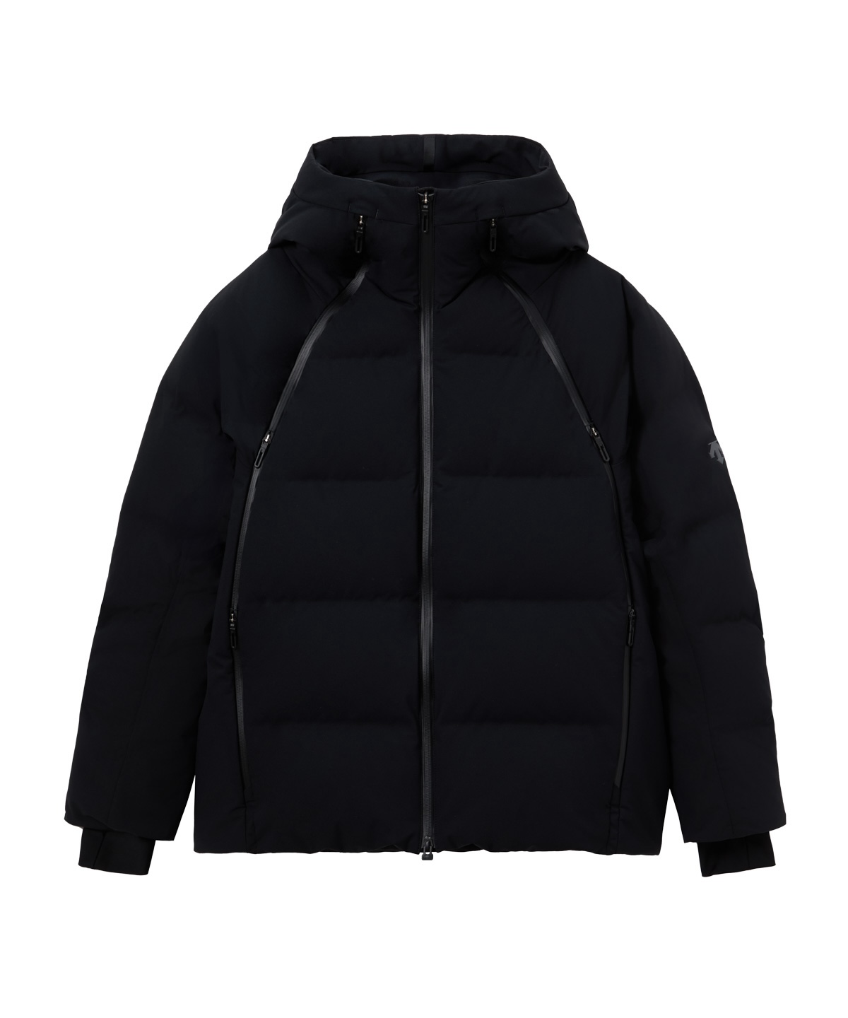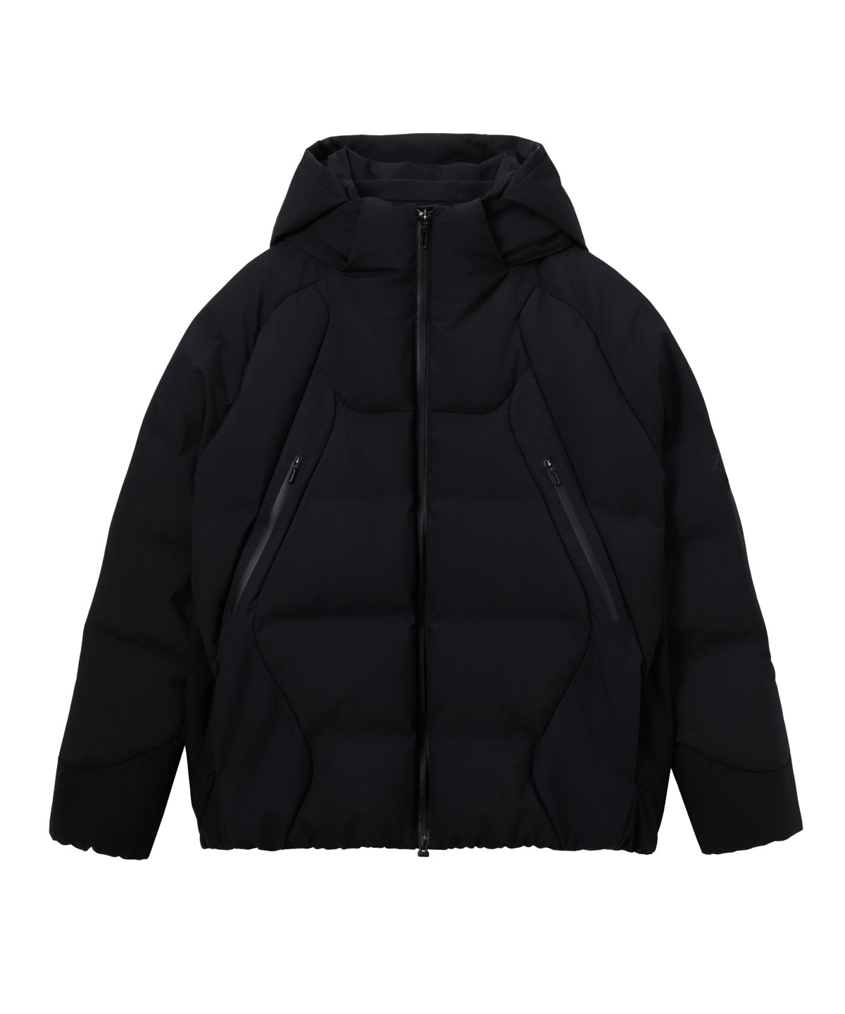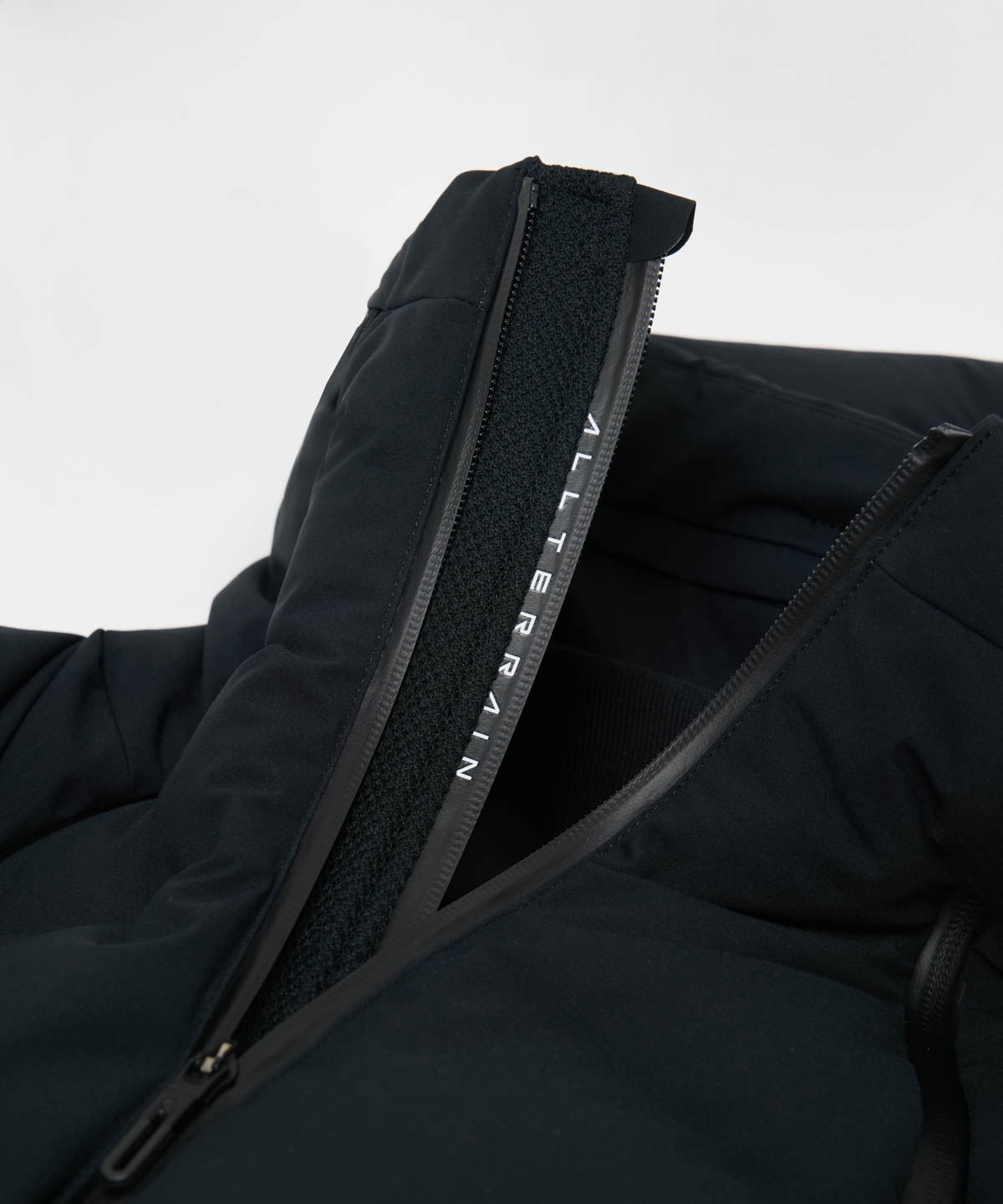 左右のファスナーは、ベンチレーション、ハンドウォーマー、ポケットの3機能を集約し、ミニマルながら高い合理性を実現。表地には耐久性に優れるCORDURA®ストレッチ素材を採用し、熱接着ノンキルト加工とシームテープ加工によって高い耐水性を確保している。