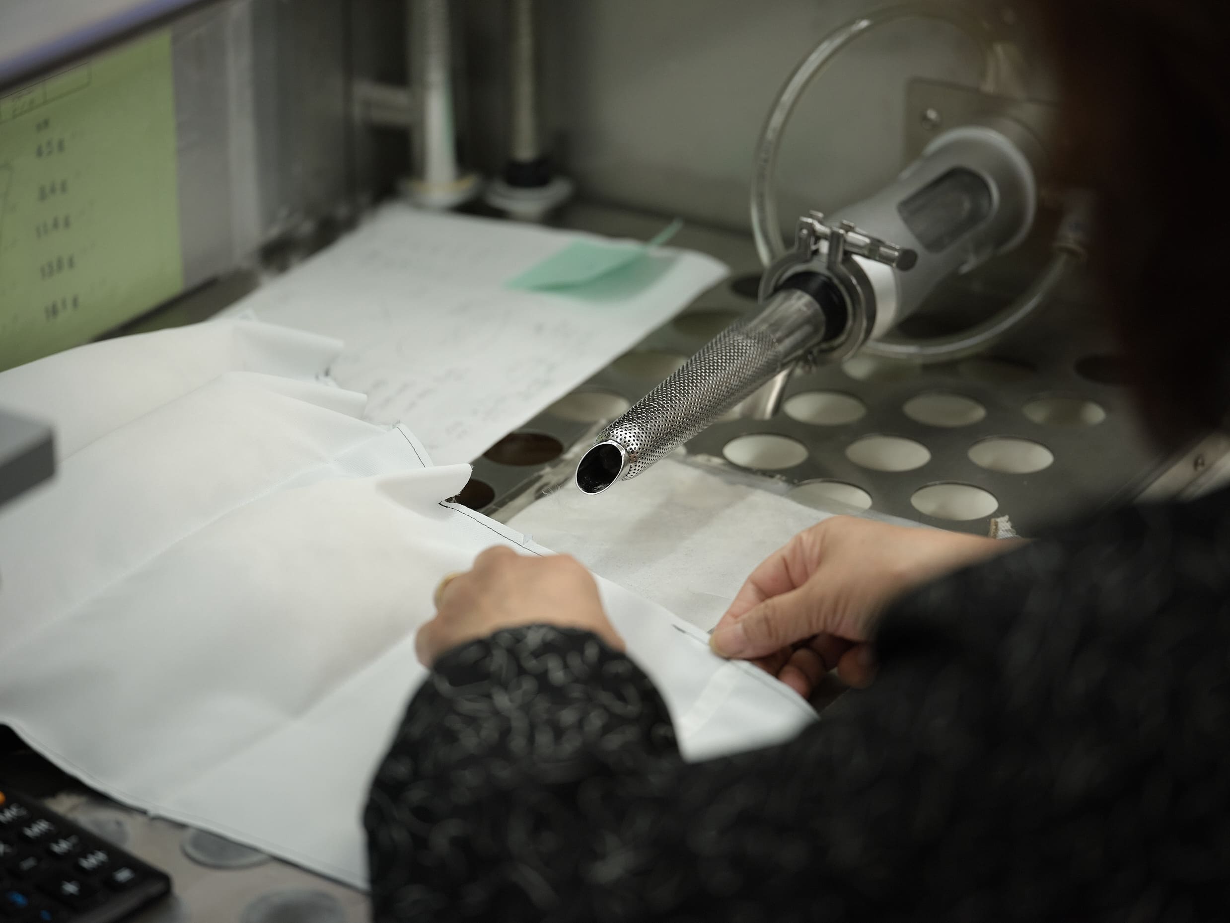 効率だけを考えれば自動化も可能かもしれないフェザーの検品も、最終的な品質を担保するために、あえて人の目と手を介在させる。ピンセットを使った羽毛の状態や微細な異物を見極めるその細やかな作業に見られるように、“ハイテク×アナログ”の共存こそが、水沢ダウンを唯一無二の存在たらしめている理由の一つだ。
