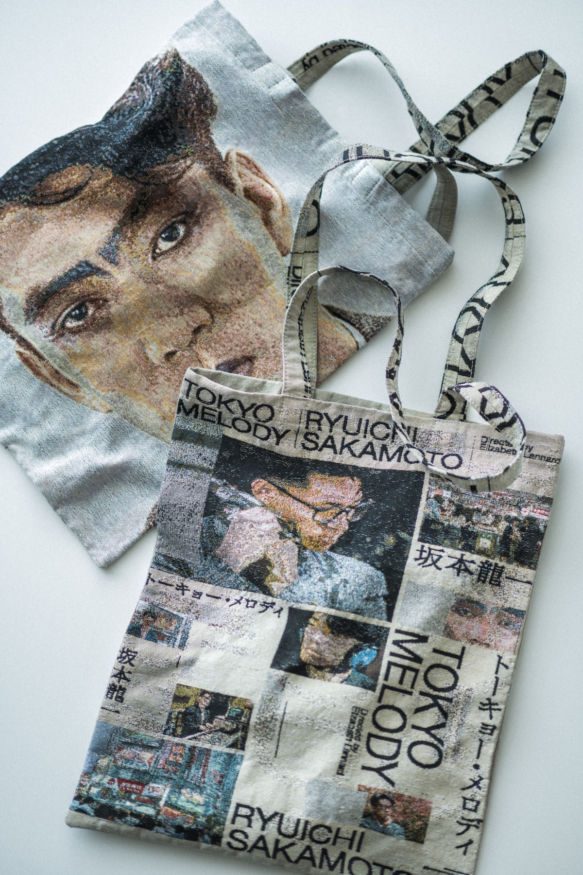 トートバッグはデザインユニットのGOO CHOKI PAR(グーチョキパー)が手がけたメインビジュアルと、本作のオフィシャルカナフォントを使用した両面デザインに加え、新たに解禁されたシーン写真の中から坂本龍一の世界観を象徴する、独創的なメイクを施した姿を採用した全2型を展開。いずれもジャガード織による、迫力と奥行きを備えた仕上がりとなっている。