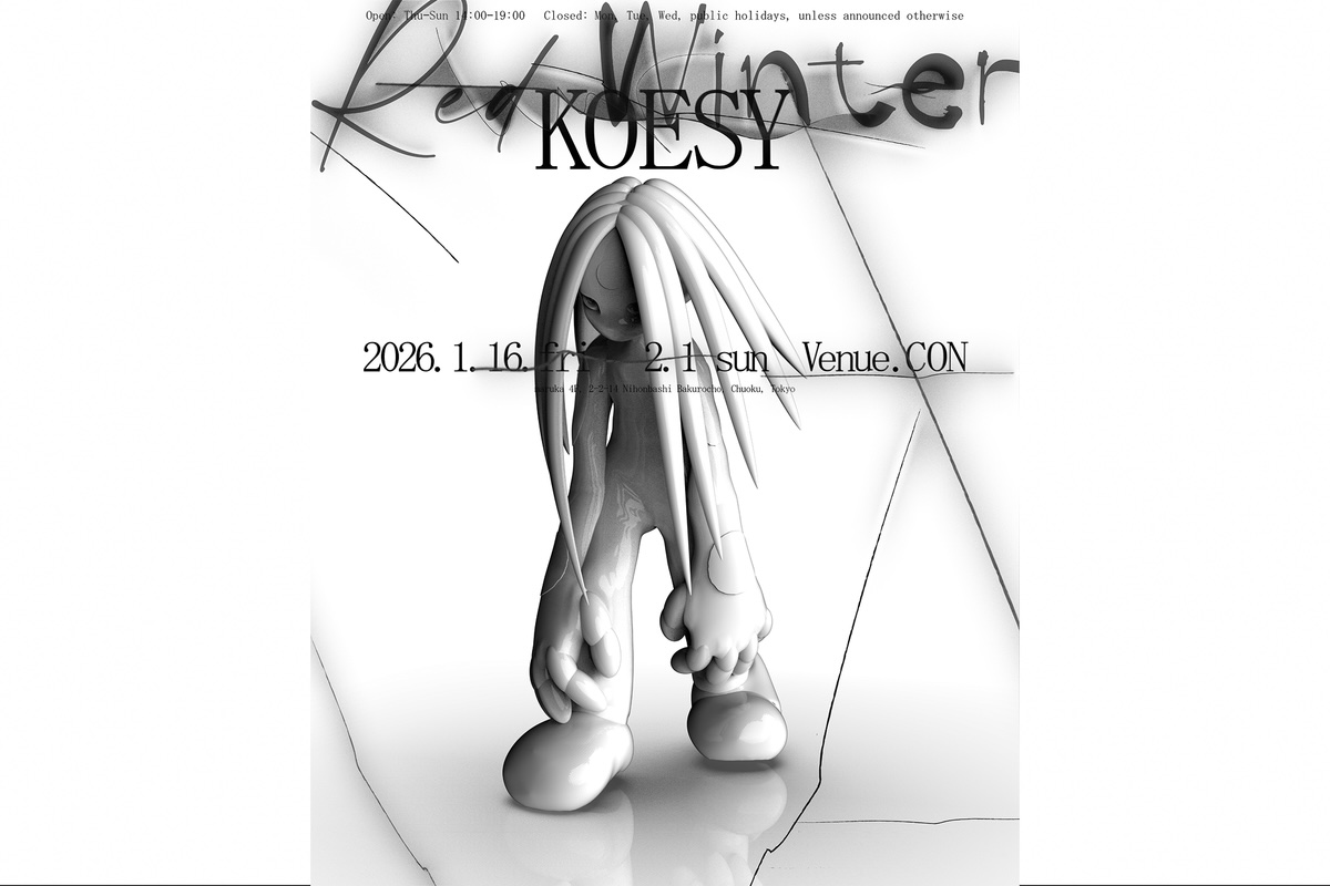 韓国・ソウルを拠点に活動するアーティスト・KOESY(コエシ)による個展『Red Winter』が、日本橋馬喰町のギャラリー「CON_」で2026年1月16日(金)〜2月1日(日)まで開催される。