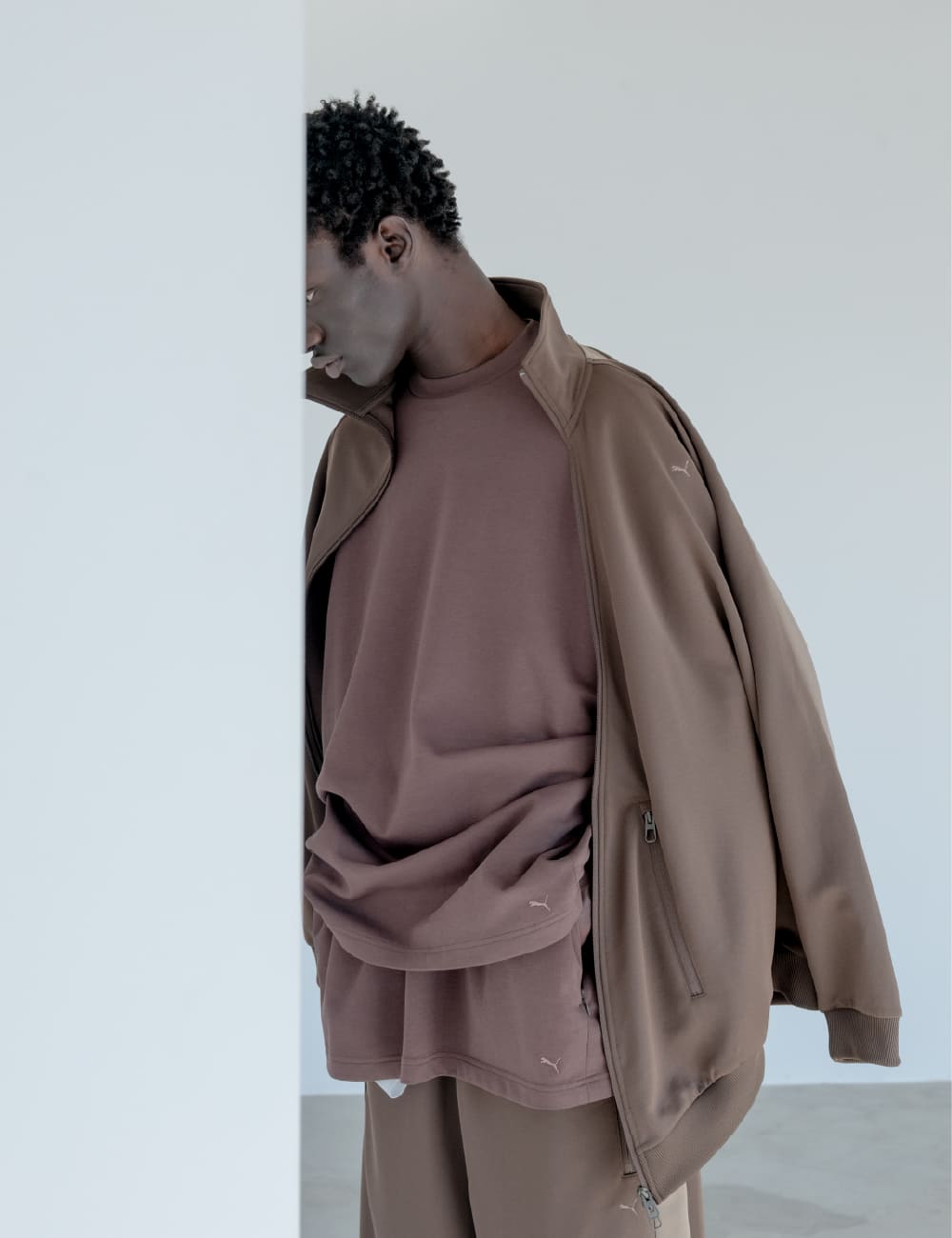 トラックブルゾンやトラックパンツに加え、オーバーサイズの半袖シャツやTシャツ、ヌバックで仕上げたシューズの「SPRINT」といった、PUMAが培ってきた機能性と、日常に溶け込むデザインを融合したアイテムが揃う。曲線と直線が織りなす有機的なフォルムと温かみのある色合いによって、新しいプーマの世界観を表現している。