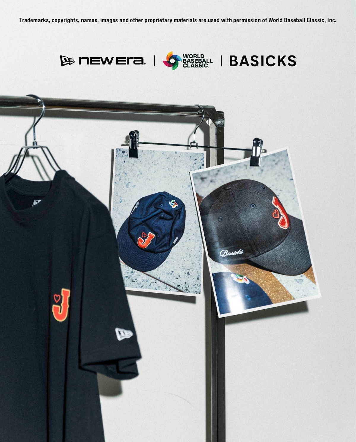 開幕に向けてムードを盛り上げる本コレクションは、2026年2月28日(土)より、BASICKSの直営店と取扱店、NEW ERA®の公式オンラインストアで販売を開始する。