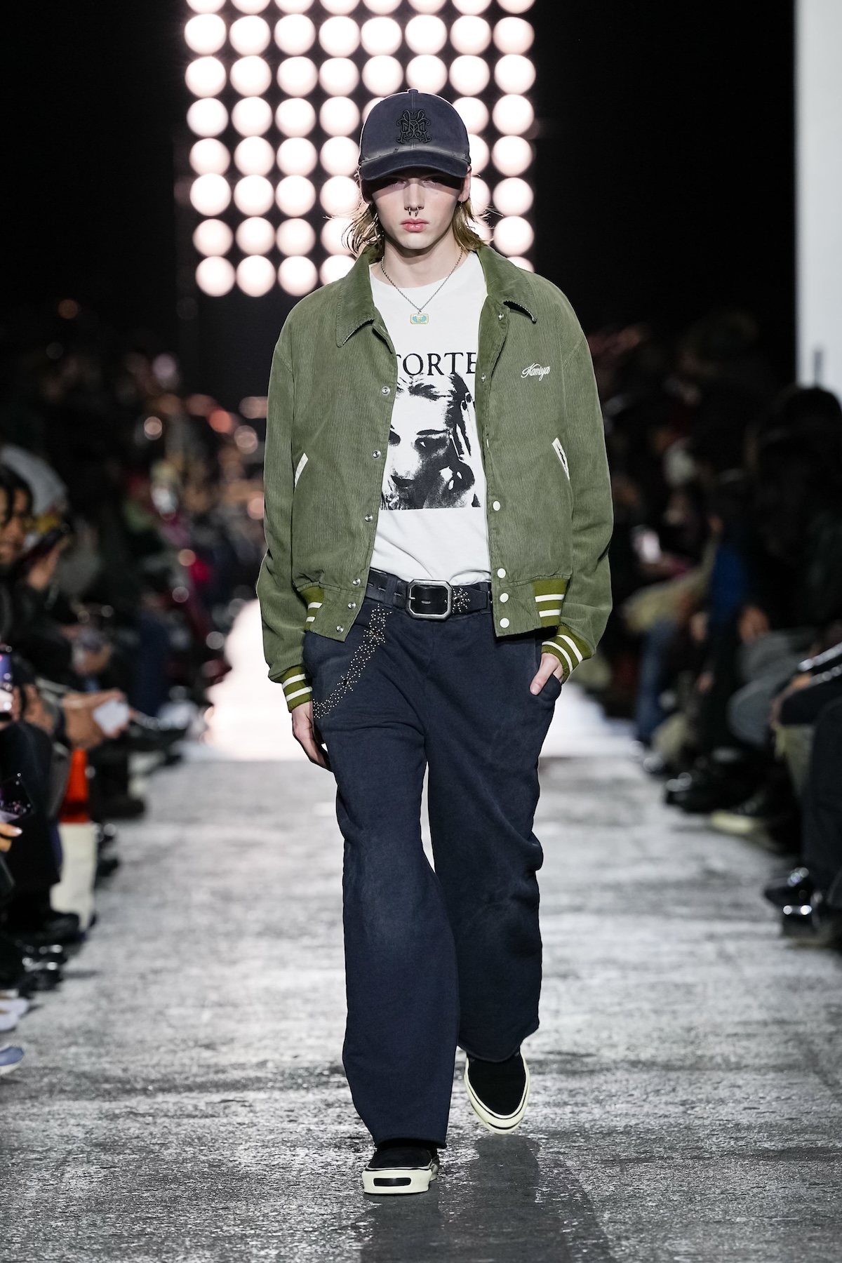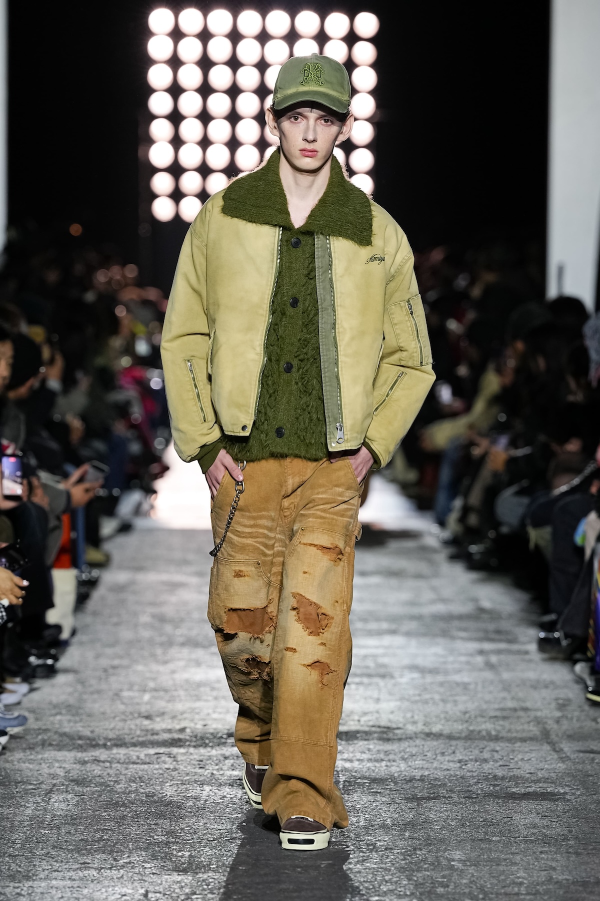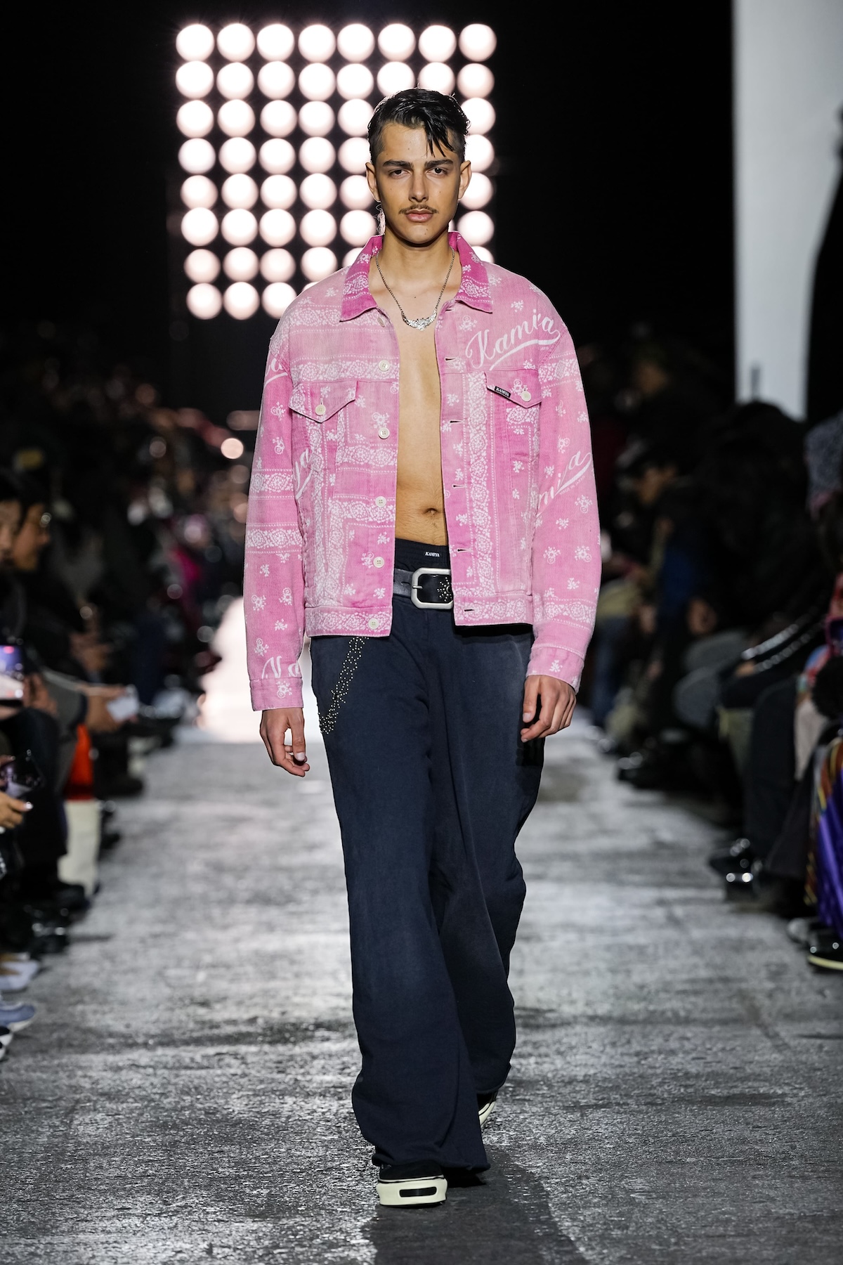 KAMIYA(カミヤ)が2026年2月13日、東京・新木場で2026年秋冬コレクションを発表した。シカゴのラッパー、トビ・ルー(Tobi Lou)のライブパフォーマンスとファー襟のMA-1ルックで幕を開けたショーでは、"ACT COOL"というコンセプト通り、長いランウェイでテーラリングやレザー、ファーなどを差し込み、リュクスなムードをKAMIYAらしいアメリカンカジュアルに纏わせた。